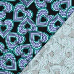 Baumwolljersey Streifenherzen - schwarz