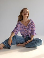 Viskose Popeline Palmenblätter - lavendel